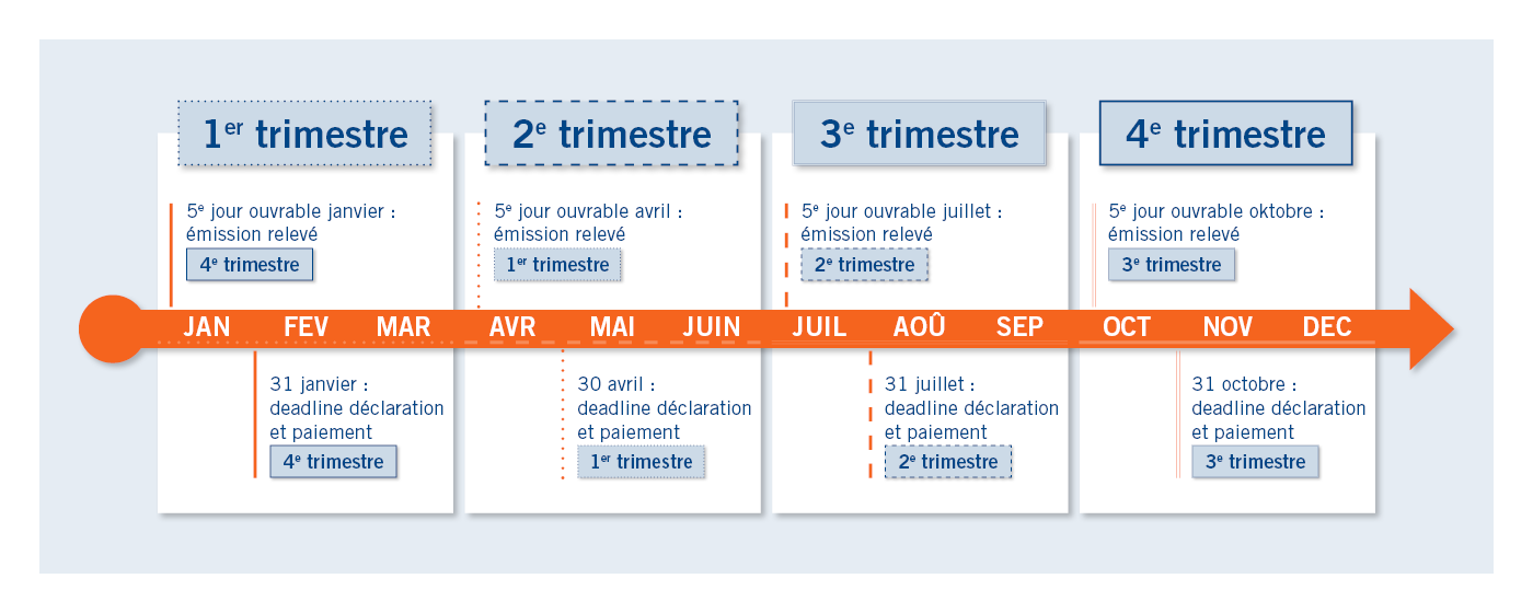 Vous ou votre secr├®tariat social avez l├®galement jusquÔÇÖ├á la fin du mois suivant le trimestre ├®coul├® pour :